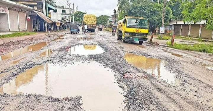 অধিকাংশ স্থানে পিচ-পাথর উঠে বড় বড় গর্ত তৈরি হয়েছে।
