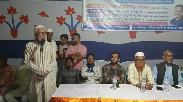 গণঅধিকার পরিষদ হবিগঞ্জ সদর উপজেলা শাখার উদ্যোগে যোগদান সভা অনুষ্ঠিত হয়েছে। গতকাল শনিবার বিকেল ৫ টায় শহরতলীর ধুলিয়াখালে এ যোগ দান সভা অনুষ্ঠিত হয়। গণঅধিকার পরিষদ হবিগঞ্জ জেলা শাখার সহ-সভাপতি সিরাজুল ইসলামের সভাপতিত্বে অনুষ্ঠিত সভায় প্রধান অতিথি ছিলেন গণঅধিকার পরিষদ হবিগঞ্জ জেলা শাখার সভাপতি এডভোকেট চৌধুরী আশরাফুল বারী নোমান। গণঅধিকার পরিষদ হবিগঞ্জ সদর উপজেলা শাখার যুগ্ম-আহবায়ক মাওলানা ফরিদ আহমেদ এর পরিচালনায় এতে বিশেষ অতিথি ছিলেন গণঅধিকার পরিষদ হবিগঞ্জ জেলা শাখার সাধারণ সম্পাদক এডভোকেট নজরুল ইসলাম খান, যুগ্ন- সাধারণ সম্পাদক এডভোকেট আব্দুল মালেক, সাংগঠনিক সম্পাদক আহবাব হোসেন জুয়েল। সভায় অন্যান্যদের মধ্যে বক্তব্য রাখেন গনঅধিকার পরিষদ হবিগঞ্জ জেলা শাখার সহ-সাংগঠনিক সম্পাদক মীর দুলাল, গণঅধিকার পরিষদ হবিগঞ্জ জেলা শাখার মানব অধিকার বিষয়ক সম্পাদক ইঞ্জিনিয়ার আতাউর রহমান রাসেল, বাবুল,মিয়া, মজিদ মিয়া, ফিরোজ আলী, আব্দুল কাদির, সামসু মিয়া, আঃ আহাদ, শফিক মিয়া, রফিক মিয়া, হিরা মিয়া, যুব নেতা হুমায়ুন কবির, সাদেকুর রহমান (মেম্বার গোপায়া ইউপি), জেলা শাখার সদস্য এমরান মিয়া, সাহিদ সর্দার, মরতুজ আলী, শাকিল আহমেদ জীবনসহ হবিগঞ্জ জেলা ও উপজেলা শাখার নেতৃবৃন্দ।
