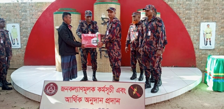 খাগড়াছড়ি জেলা পানছড়ি উপজেলা ১৯ ডিসেম্বর (বৃহস্পতিবার )পার্বত্য এলাকার শান্তি, সম্প্রীতি ও উন্নয়নের ধারা অব্যাহত রাখার লক্ষ্যে সদর দপ্তর লোগাং জোনের পক্ষ হতে একটি জনকল্যাণমূলক কর্মসূচীর আওতায় দুস্থ গরিব অসহায় পরিবারের মাঝে লোগাং জোন (৩ বিজিবি) এর দায়িত্বপূর্ণ এলাকার ০৯ জন দুস্থ, গরীব ও অসহায় পরিবারকে ০৯ বান্ডিল (প্রত্যেক পরিবারকে ০১ বান্ডিল করে) ঢেউটিন এবংঅসহায় ০৩ জন মহিলাকে সেলাই মেশিন, ০১ জন অসহায় পরিবারকে সোলার প্যানেল, ০৮ জন দুস্থ, গরীব, অসহায় ও অসুস্থ রোগীর চিকিৎসার ব্যয় নির্বাহের জন্য আর্থিক অনুদান, হাসান নগর সরকারী প্রাথমিক বিদ্যালয়ের শিক্ষার্থীদের ০১ সেট ব্যাডমিন্টন খেলার সামগ্রী এবং দুদুকছড়া এলাকার জনসাধারণের খেলার জন্য ০১ সেট ভলিবল ও নেট প্রদান করেন অধিনায়ক, পানছড়ি ব্যাটালিয়ন (৩ বিজিবি) ও লোগাং জোনের জোন কমান্ডার লেঃ কর্নেল মোঃ মফিজুর রহমান ভূঁইয়া।সামগ্রী ও আর্থিক অনুদান প্রদান শেষে এলাকার শান্তি, সম্প্রীতি ও উন্নয়নের ধারা বজায় রাখতে এ ধরণের কার্যক্রম অব্যাহত থাকবে বলে তিনি সকলকে আশ্বস্থ করেন।