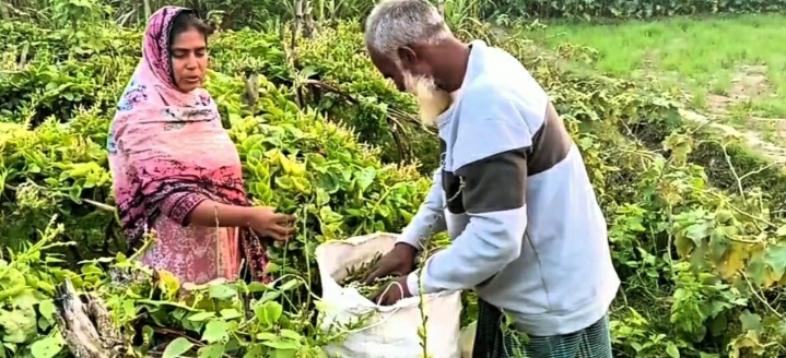 রবিবার (২৯ ডিসেম্বর) সরেজমিনে মেহেরপুরের গাংনী উপজেলার মাইলমারী ফেলারচড়া মাঠে গিয়ে দেখা মেলে রবিউল ইসলাম ও তাহার সহধর্মিণী শর্মিলা খাতুনের পুঁইশাকের মুচড়ি, শিম ও বেগুন তোলার দৃশ্য।