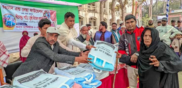 বরিশাল হিজলায় রহমান এন্ড নেছা ফাউন্ডেশন এর পক্ষ থেকে বরিশাল হিজলায় অসহায় শীতার্ত মানুষের মাঝে শীতবস্তু বিতরণ করেন।