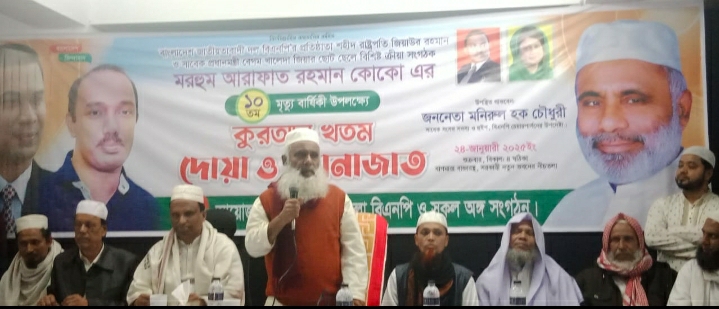 ২৪ জানুয়ারি শুক্রবার লালমাই উপজেলা বিএনপি ও সকল সংগঠনের আয়োজনে মরহুম আরাফাত রহমান কোকো এর ১০তম মৃত্যু বার্ষিকী উপলক্ষে কুরআন খতম দোয়া ও মোনাজাত অনুষ্ঠান উপজেলার বাগমারা বাজারস্থ নতুন ভবনের নিচ তলায় অনুষ্ঠিত হয়েছে।