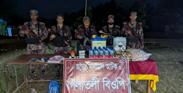 গিলাতল বিওপির টহল কমান্ডার জেসিও নাঃসুবেঃ মোঃ আইউবুর রহমান এর নেতৃত্বে বাংলাদেশের অভ্যান্তরে বাহির মুখি নিমোক্ত মালামাল আটক করেন।সিস্টেম প্লাস ২০ বোতল ( ১ লিটার) x৬৫০ টাকা= ১৩,০০০ টাকা,সিস্টেম প্লাস ০১ জারিজেন (২০ লিটার)=০১ টি x১৩,০০০ টাকা=১৩,০০০ টাকা,