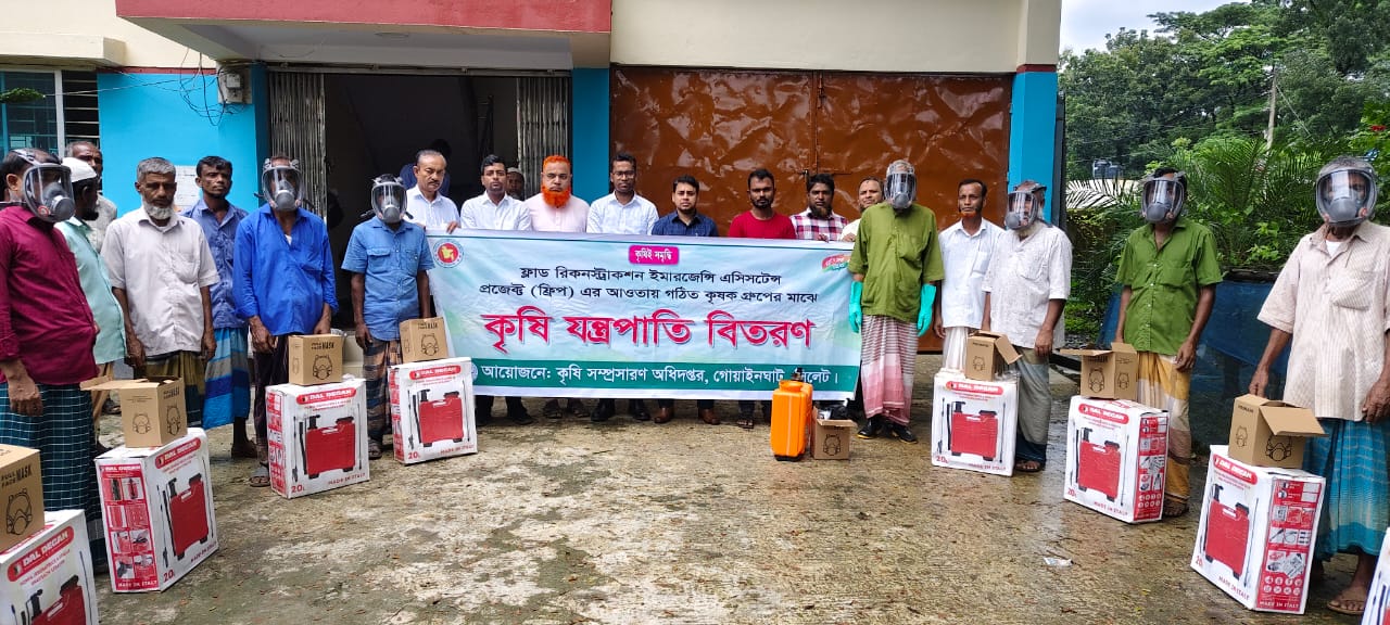 সিলেটের গোয়াইনঘাটে ২০২৫-২৬ অর্থবছরে খরিপ-২ মৌসুমে মাষকালাই উৎপাদন বৃদ্ধির লক্ষে ক্ষুদ্র ও প্রান্তিক কৃষকদের মাঝে বিনামূল্যে বীজ ও সার এবং ফ্লাড রিকনস্ট্রাকশন ইমারজেন্সি অ্যাসিস্ট্যান্ট প্রজেক্ট (ফ্রিপ) এর আওতায় গঠিত কৃষক গ্রুপের মাঝে কৃষি যন্ত্রপাতি বিতরণ করা হয়েছে।