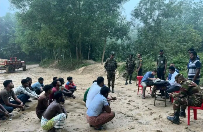 চুনারুঘাটে অবৈধ সিলিকা বালু উত্তোলনে যৌথবাহিনীর অভিযানে ১৪ জন আটক।