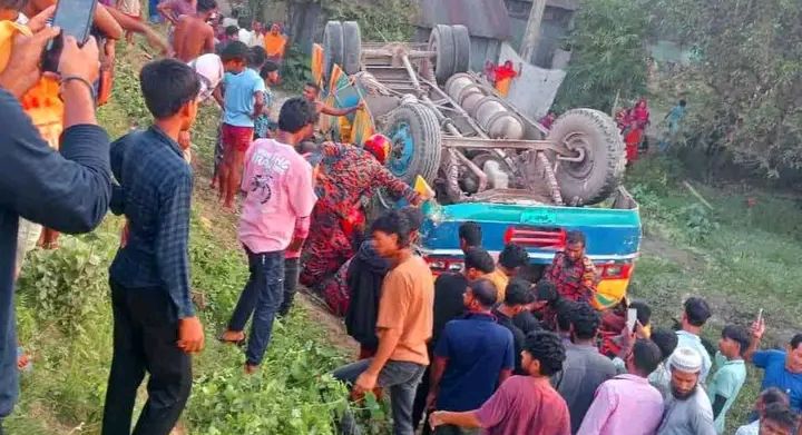 পুলিশ ও প্রত্যক্ষদর্শীরা জানান, সিলেটের হযরত শাহজালাল (রহ.) মাজার থেকে ঢাকাগামী একটি যাত্রীবাহী বাস নিয়ন্ত্রণ হারিয়ে সড়কের পাশে খাঁদে পড়ে যায়।