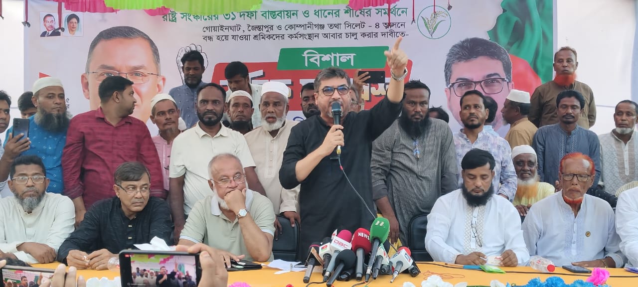 তিনি শুক্রবার (৩১ অক্টোবর) বিকেলে সিলেটের গোয়াইনঘাট উপজেলার জাফলংয়ে বিএনপির ভারপ্রাপ্ত চেয়ারম্যান তারেক রহমান ঘোষিত রাষ্ট্রকাঠামো মেরামতের ৩১ দফা কর্মসূচি ও ধানের শীষের সমর্থনে এবং জৈন্তাপুর, গোয়াইনঘাট ও কোম্পানীগঞ্জ উপজেলার শ্রমিকদের বন্ধ হওয়া কর্মসংস্থান চালুর দাবিতে জাফলং ইউনিয়ন বিএনপি পরিবার, ব্যবসায়ী, সামাজিক ও শ্রমিক সংগঠন সমূহ আয়োজিত শ্রমিক সমাবেশে প্রধান অতিথির বক্তব্যে তিনি এসব কথা বলেন।