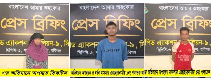 মীর দুলাল।। র্যাপিড অ্যাকশন ব্যাটালিয়ন (র্যাব)-৯ এর পৃথক দুই অভিযানে হবিগঞ্জ জেলায় ধর্ষণ ও অপহরণ মামলার দুই আসামিকে গ্রেফতার এবং একজন শিশুসহ দুই ভিকটিমকে উদ্ধার করা হয়েছে।