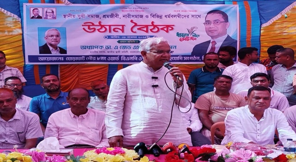 দিনাজপুরের ঘোড়াঘাট পৌর ৮ নং ওয়ার্ড বিএনপির আয়োজনে আসন্ন জাতীয় সংসদ নির্বাচন উপলক্ষে স্থানীয় সুধী সমাজ, ব্যবসায়ী, শ্রমজীবি, নারী সমাজ ও বিভিন্ন ধর্মাবলম্বীদের নিয়ে শনিবার সকাল ১১ টায় পৌরসভার ওসমানপুর বর্ণমালা বিদ্যালয় মাঠে ওঠান বৈঠকে তিনি এসব কথা বলেন।