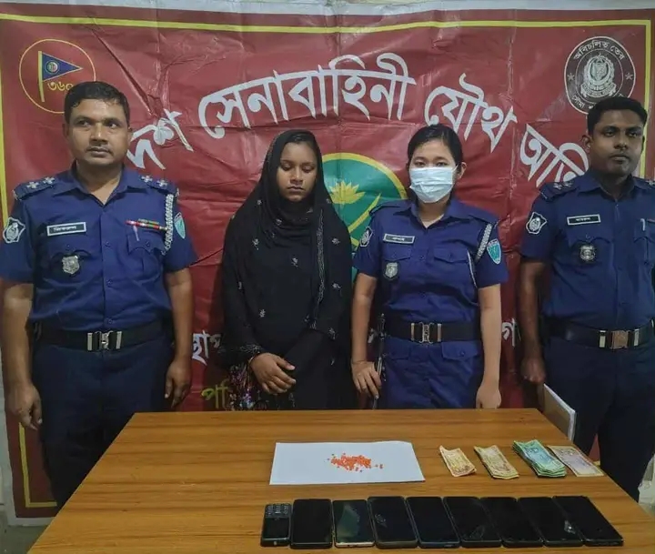 জব্দকৃত মালামাল:১২২ পিস ইয়াবা ৯টি মোবাইল ফোন নগদ টাকা ২৮,৪০০ টাকা।