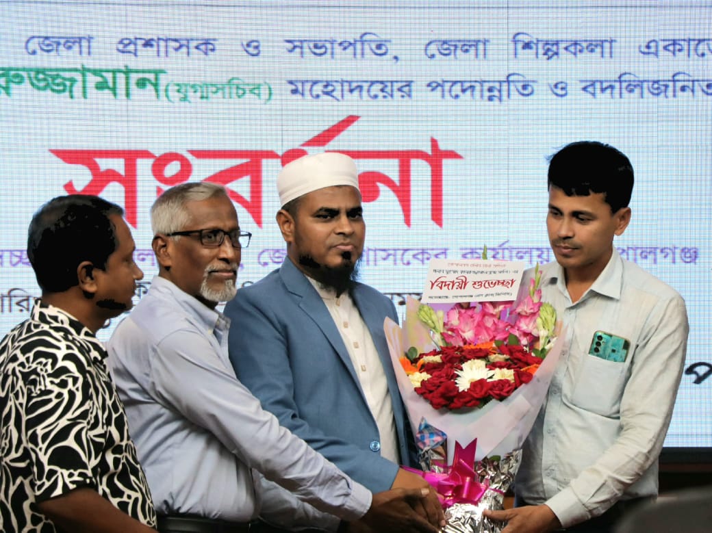 গোপালগঞ্জ প্রেস ক্লাব (জিপিসি'র) উদ্দোগে ১৩ নভেম্বর বৃহস্পতিবার দুপুর ১.৩০ টায় গোপালগঞ্জ জেলার স্বপ্ন বিলাসী, মানবিক ও সুযোগ্য জেলা প্রশাসক মুহাম্মদ কামরুজ্জামান যুগ্ম সচিব (বিজ্ঞ জেলা ম্যাজিস্ট্রেট) মহোদয়কে পদোন্নতি ও বদলী জনিত কারনে