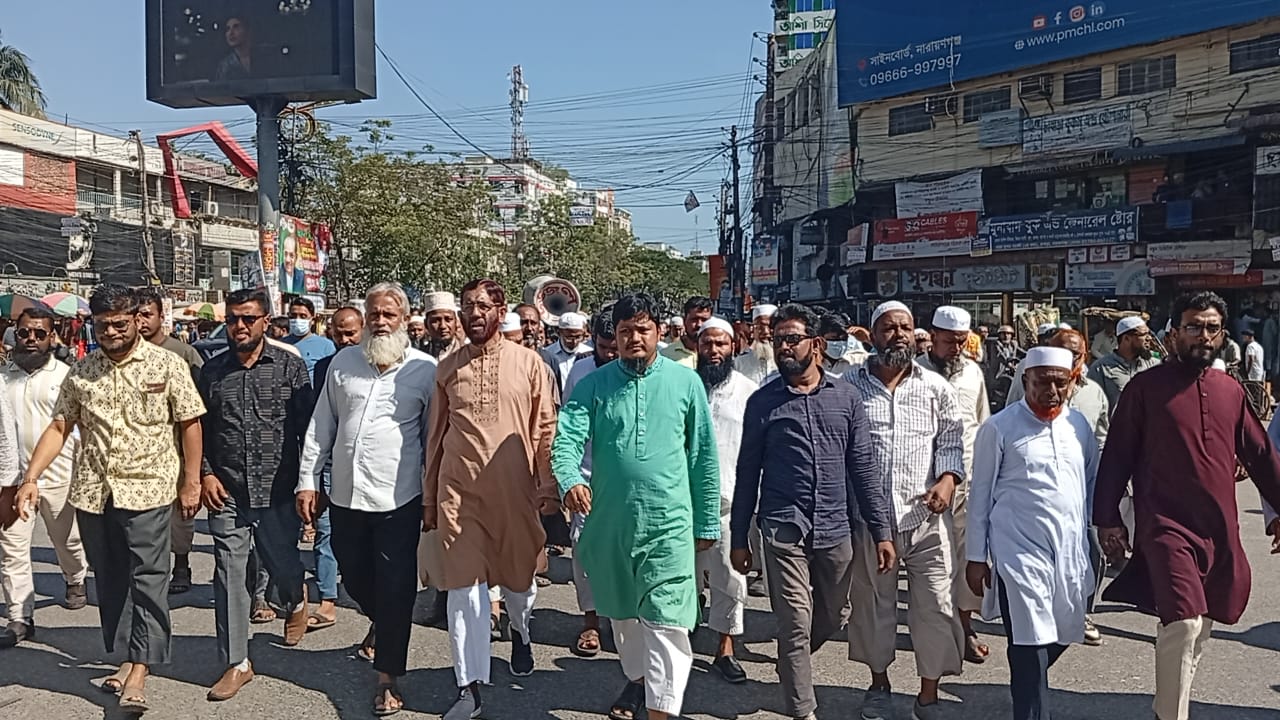 মিশনপাড়া মোড়ে থেকে বিক্ষোভ সমাবেশ সহস্রাধিক নেতাকর্মী নিয়ে মিছিল করে শহরের নবাব সলিমুল্লাহ সড়ক পদক্ষিন করে নবাব সিরাজউদৌলা রোড হয়ে মিশনপাড়া গোলচত্বরে এসে শেষ হয়।