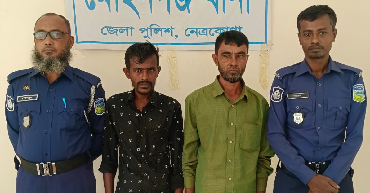 গ্রেফতারকৃতরা হলেন- মোহনগঞ্জ পৌরশহরের নওহাল এলাকার আব্দুল বারেকের ছেলে মো. হিমেল মিয়া (৩৩) ও টেংগাপাড়া এলাকার আব্দুল কুদ্দুসের ছেলে নজরুল ইসলাম (৪৯)।