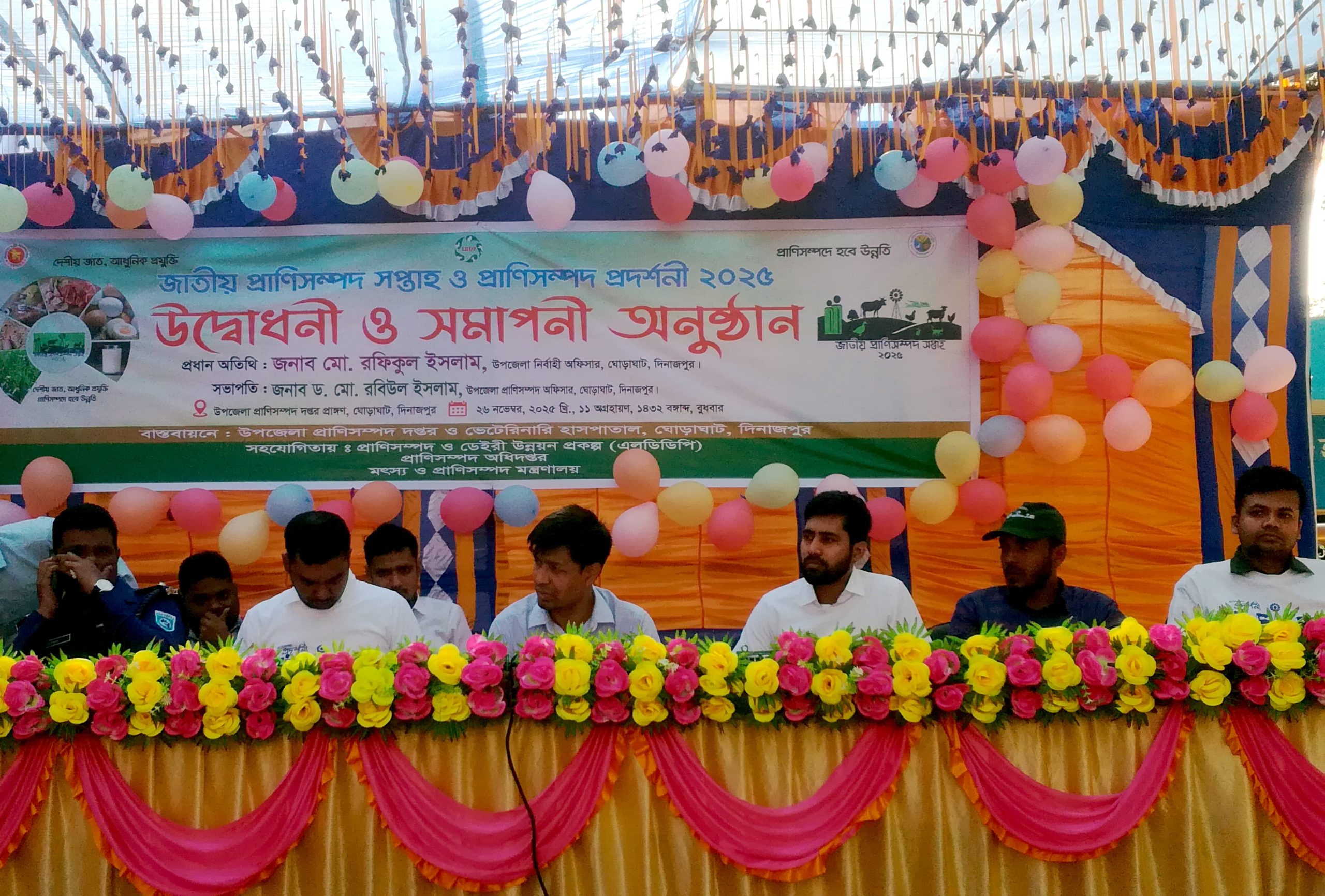 অত্যন্ত দায়সারা ভাবে চলছে দিনাজপুরের ঘোড়াঘাটে প্রানীসম্পদ কর্তৃক প্রানী প্রদর্শনীর আয়োজন করা হয়। প্রদর্শনীতে দর্শনীয় কোন প্রানী না থাকায় হতাশ হয়েছেন মেলায় আগত দর্শনার্থীরা। আলোচনা সভার শুরুতে একটি র্যালী বিভিন্ন সড়ক প্রদক্ষিন করে মেলা প্রাঙ্গনে শেষ হয়। উদ্বোধনী সভায় প্রধান অতিথির বক্তব্য দেন ঘোড়াঘাট উপজেলা নির্বাহী অফিসার রফিকুল ইসলাম। এ ছাড়াও বক্তব্য দেন উপজেলা সহকারী কমিশনার (ভূমি) আব্দুল্লাহ আল মামুন কাওছার শেখ, মৎস্য অফিসার রিয়াজ মোর্শেদ রনজু প্রমুখ। খামারীর মধে বক্তব্য দেন মন্ডল ডেইরী ফার্মের মালিক কৌশিক মন্ডল, শাহানাজ ইসলাম ও জাহাঙ্গীর আলম। অনুষ্ঠানে সভাপতিত্ব করেন