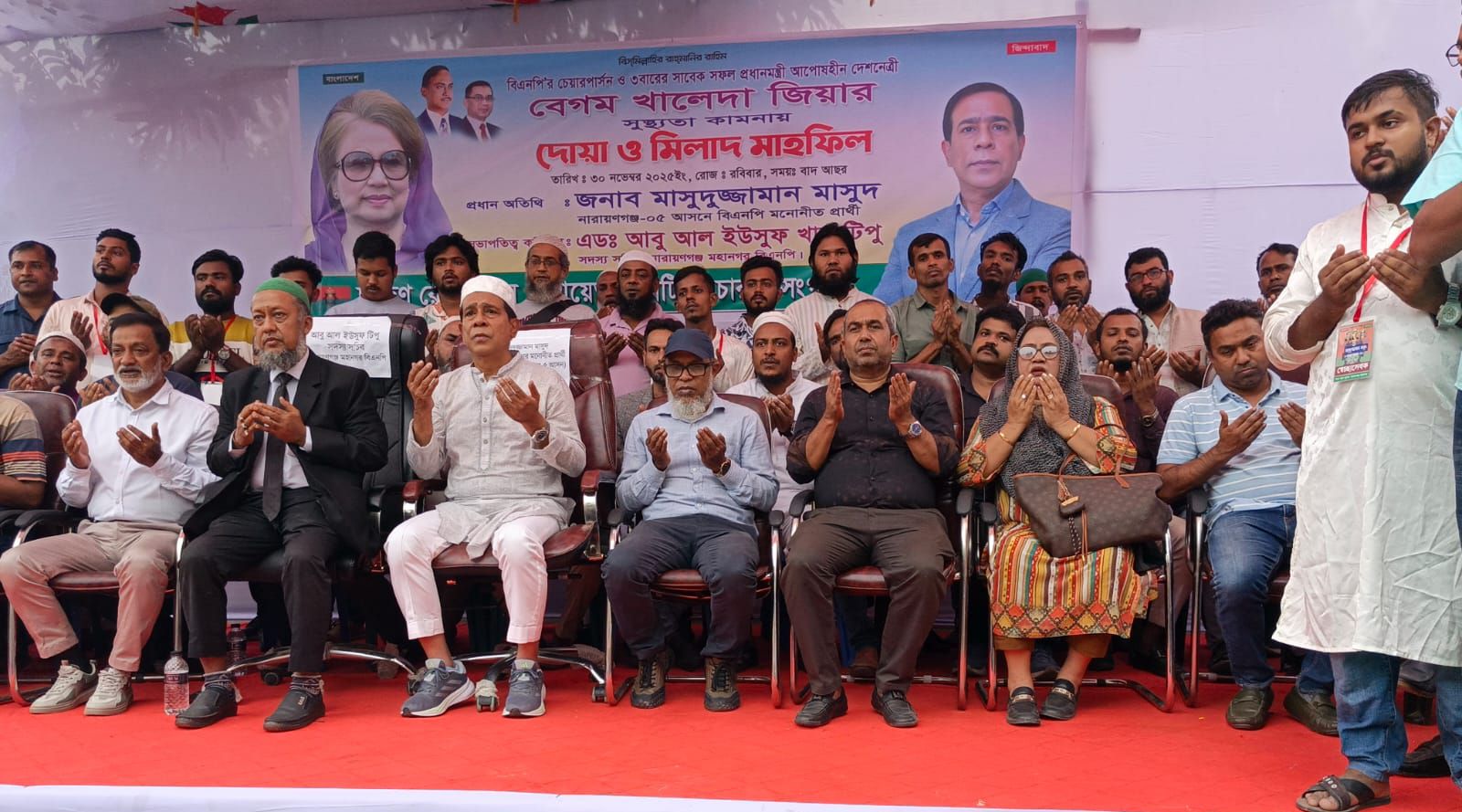 ৩০ শে নভেম্বর রোজ রবিবার বিকাল চার ঘটিকার সময়, নারায়ণগঞ্জ গণবিদ্যা স্কুল মাঠে, বেগম খালেদা জিয়ার সুস্থতা কামনায়, দোয়া মাহফিল অনুষ্ঠিত ,