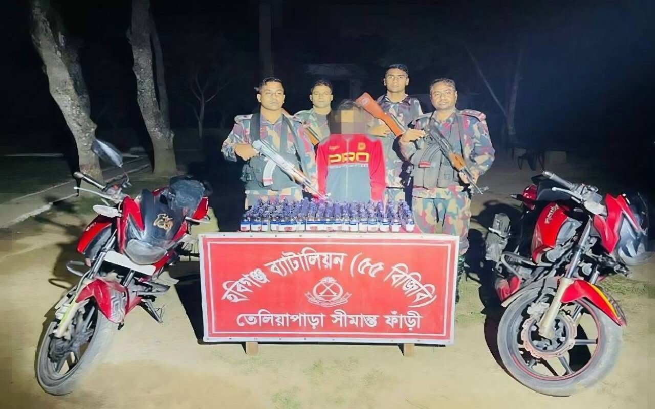 বিজিবি জানায়, মাধবপুরের তেলিয়াপাড়া বিওপির টহল দল রাতে সীমান্তের শূন্যরেখা থেকে প্রায় ৮০০ গজ ভেতরে উরিষ্যা লাইন এলাকায় নিয়মিত টহল পরিচালনা করছিল। এ সময় সন্দেহজনকভাবে দুইটি মোটরসাইকেল দেখা গেলে বিজিবি সংকেত দেয়।থামার সংকেত পেয়ে মোটরসাইকেলে থাকা দুই ব্যক্তি যানবাহন ফেলে চা-বাগানের দিকে পালানোর চেষ্টা করে।