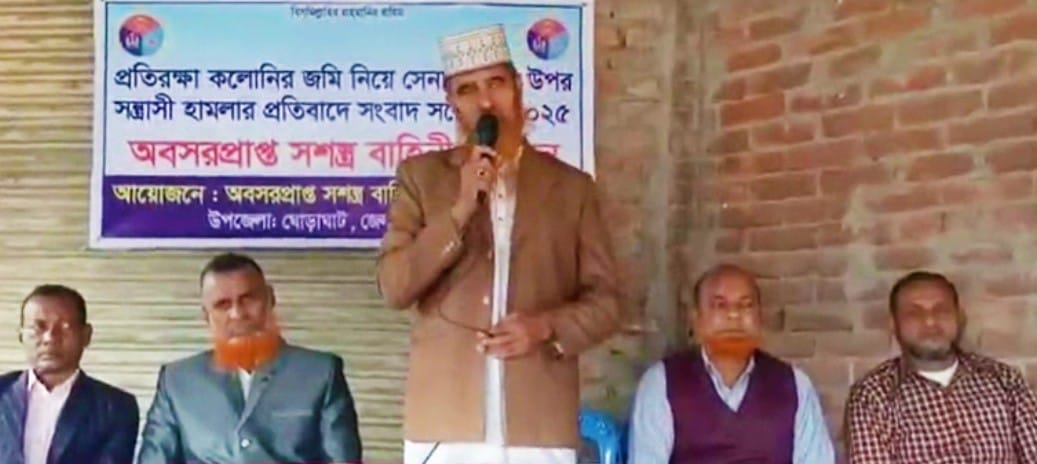দিনাজপুরের ঘোড়াঘাটে প্রতিরক্ষা কলোনির জমি নিয়ে সেনাবাহিনীর উপর সন্ত্রাসী হামলার প্রতিবাদে সংবাদ সম্মেলন করেছে অবসরপ্রাপ্ত সশস্ত্রবাহিনী সংগঠন।