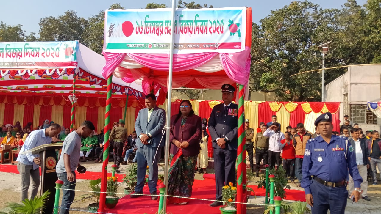 জানা গেছে, ১৬ ডিসেম্বর মঙ্গলবার সকালে উপজেলা প্রশাসনের উদ্যোগে উপজেলা শহীদ মিনারে শহীদদের স্মরণে পুষ্পস্তবক অর্পণ এবং পরে তানোর উপজেলা ডাকবাংলো মাঠে জাতীয় পতাকা উত্তোলন, কুচকাওয়াজ, ডিসপ্লে প্রদর্শনী, বীর মুক্তিযোদ্ধাদের সংবর্ধনা ও বিভিন্ন কর্মসূচি অনুষ্ঠিত হয়।এতে উপজেলা নির্বাহী কর্মকর্তা নাঈমা খান, সহকারি কমিশনার (ভূমি) শিব শংকর বসাক, উপজেলা কৃষি কর্মকর্তা সাইফুল্লাহ আহমেদ, উপজেলা স্বাস্থ্য কর্মকর্তা ( টিএইচও) ডাঃ বার্নাবাস হাসদা উপজেলা প্রাণীসম্পদ কর্মকর্তা ডাঃ ওয়াজেদ আলী, তানোর থানার অফিসার ইনচার্জ ( ওসি) শাহিনুজ্জামান উপজেলা প্রকৌশলী নুরনাহার, উপজেলা সমবায় কর্মকর্তা নাদিম উদ্দিন, উপজেলা সমাজ সেবা কর্মকর্তা শাহিদুর ইসলাম, উপজেলা মহিলা বিষয়ক কর্মকর্তা হাবিবা খাতুন, উপজেলা সহকারী প্রকৌশলী ( জনস্বাস্থ্য ) জাকির হোসেন ও উপজেলা আইসিটি কর্মকর্তা মোসাঃ মৌসুমী খাতুনসহ বিভিন্ন স্তরের জনপ্রতিনিধি, বীর মুক্তিযোদ্ধা, রাজনৈতিক নেতৃবৃন্দ, তানোর মডেল প্রেসক্লাবের সভাপতি আব্দুস সবুর সহ-সভাপতি মনিরুজ্জামান মনি সাধারণ সম্পাদক সারোয়ার হোসেন ও সাংগঠনিক সম্পাদক মো রাজু আহমেদ স্থানীয় সুশীল সমাজের সুধীজন এবং বিভিন্ন শ্রেণি-পেশার মানুষ অংশ নেন। অনুষ্ঠান শেষে পুরুষ্কার বিতরণ ও আলোচনা সভায় বিজয় দিবসের চেতনায় দেশপ্রেমে উদ্বুদ্ধ হওয়ার আহ্বান জানানো হয়।,