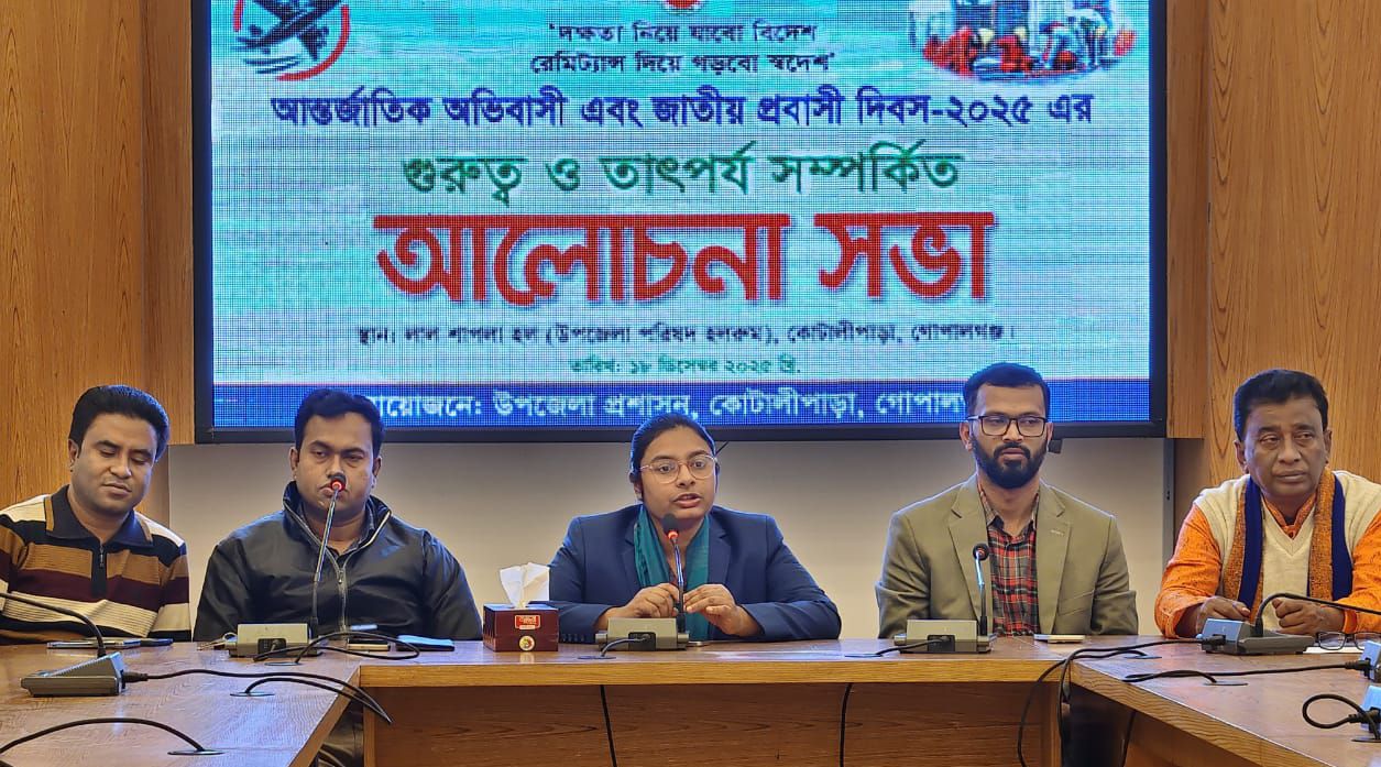 “দক্ষতা নিয়ে যাবো বিদেশ, রেমিট্যান্স দিয়ে গড়বো স্বদেশ” এই প্রতিপাদ্যের আ লোকে গোপালগঞ্জের কোটালীপাড়া উপজেলায় আন্তর্জাতিক অভিবাসী এবং জাতীয় প্রবাসী দিবস উপলক্ষে বর্ণাঢ্য র্যালি ও আলোচনা সভা অনুষ্ঠিত হয়েছে।