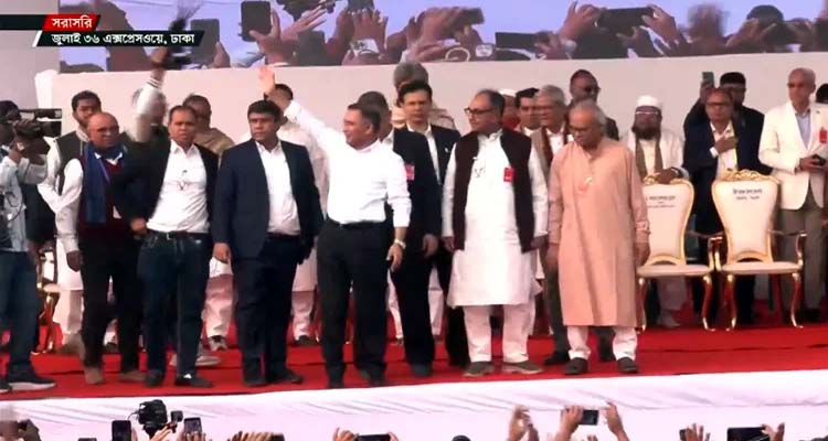 পথে নেতাকর্মীদের ভিড় ঠেলে বৃহস্পতিবার (২৫ ডিসেম্বর) বেলা ২টা ৩০ মিনিটি মঞ্চে উঠেন তারেক রহমান।