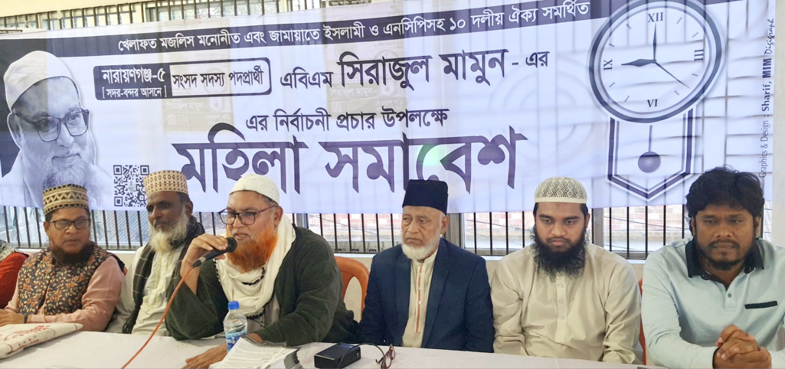 ২৪ জানুয়ারি ২০২৬, শনিবার বিকাল তিনটায় ঘাড়মোড়া হাজী নাসিরুদ্দিন কমিউনিটি সেন্টারে বাংলাদেশ জামায়াতে ইসলামীর কেন্দ্রীয় কর্মপরিষদ সদস্য মাওলানা মুঈনুদ্দীন আহমদের সভাপতিত্বে অনুষ্ঠিত এক মহিলা সমাবেশে প্রধান অতিথির বক্তব্যে তিনি এসব কথা বলেন।