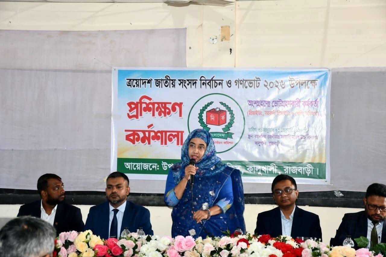 রাজবাড়ী কালুখালী রতনদিয়া রজনীকান্ত সরকারি মডেল উচ্চ বিদ্যালয়ে ত্রয়োদশ জাতীয় সংসদ নির্বাচন ও গণভোট ২০২৬ উপলক্ষে প্রিজাইডিং, সহকারী প্রিজাইডিং ও পোলিং অফিসারদের প্রশিক্ষণ কর্মশালা অনুষ্ঠিত হয়েছে।