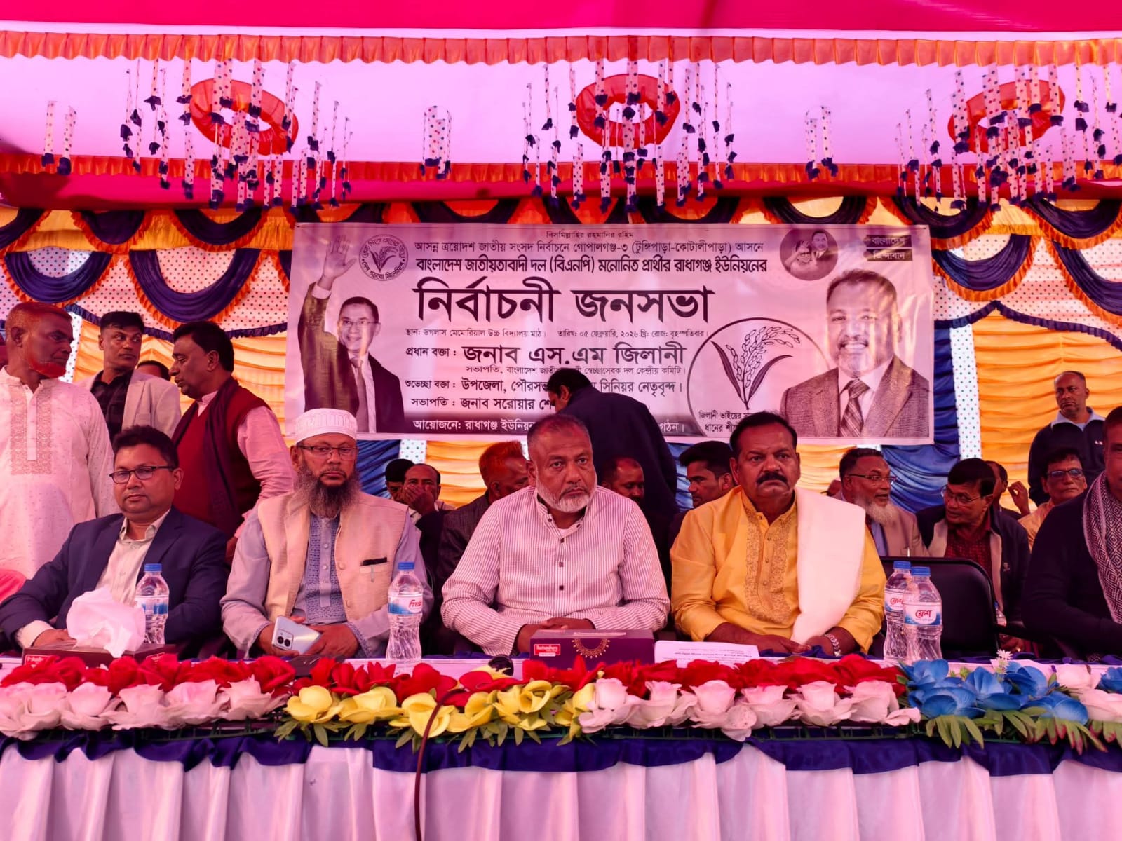 গোপালগঞ্জ সংসদীয় আসন -০৩ (টুঙ্গিপাড়া - কোটালীপাড়া) বিএনপি মনোনীত প্রার্থী জনাব এস এম জিলানী আজ বৃহস্পতিবার ( ৫ ফেব্রুয়ারী) কোটালীপাড়া উপজেলার রাধাগঞ্জ ইউনিয়ন বিএনপির উদ্দোগে ডগলাস মেমোরিয়াল উচ্চ বিদ্যালয় মাঠ প্রাঙ্গণে নির্বাচনী জনসভায় বলেন, আমার উপরে অনেক নির্যাতন করা হয়েছে, মামলা -হামলা দিয়ে কারারুদ্ধ করে রাখা হয়েছে, বিগত নির্বাচনে প্রচার করতে দেওয়া