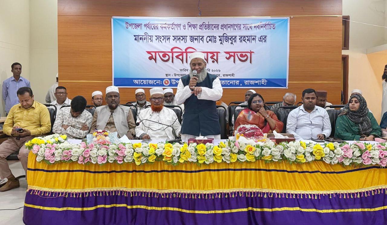 রাজশাহীর তানোরে নবনির্বাচিত এমপির সাথে পৃথক মতবিনিময় সভা অনুষ্ঠিত হয়েছে। বুধবার (২৫ ফেব্রুয়ারি) সকাল সাড়ে ১১টায় উপজেলা প্রশাসনের আয়োজনে পরিষদ সম্মেলন কক্ষে উপজেলা পর্যায়ের সব সরকারি প্রতিষ্ঠানের প্রধানদের সাথে পৃথক এক মতবিনিময় সভা অনুষ্ঠিত হয়। পরে বিকেলে উপজেলা পরিষদ অডিটোরিয়ামে শিক্ষাপ্রতিষ্ঠানের প্রধানদের সাথে শিক্ষারমান উন্নয়নেও মতবিনিময় সভা অনুষ্ঠিত হয়। এতে প্রধান অতিথি হিসেবে উপস্থিত ছিলেন রাজশাহী-১ (তানোর-গোদাগাড়ী) আসনের নবনির্বাচিত এমপি ও জামায়াতের সিনিয়র নায়েবে আমীর অধ্যাপক মুজিবুর রহমান।