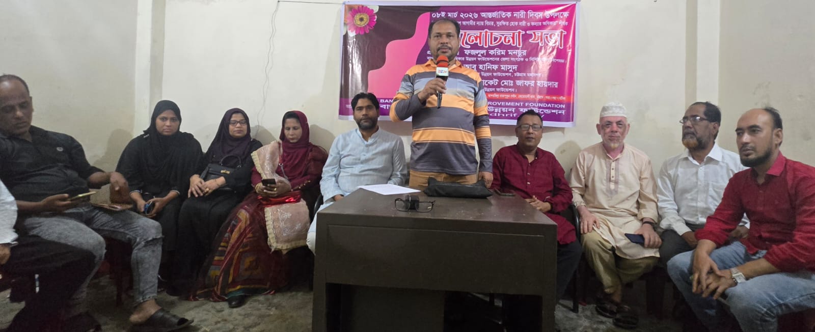 "আজকের পদক্ষেপ আগামীর ন্যায় বিচার, সুরক্ষিত নারী ও কন্যার অধিকার" এই প্রতিপাদ্যকে সামনে রেখে বাংলাদেশ মানবাধিকার উন্নয়ন ফাউন্ডেশন চট্টগ্রাম ০৮ মার্চ আন্তর্জাতিক নারী দিবস উপলক্ষে আলোচনা সভা সংস্থার কোতোয়ালী থানাধীন রাজাপুকুর লেইনস্থ সংস্থার "চেয়ারম্যান কার্যালয়ে” চেয়ারম্যান এডভোকেট মোঃ জাফর হায়দার এর সভাপতিত্বে অনুষ্ঠিত হয়।