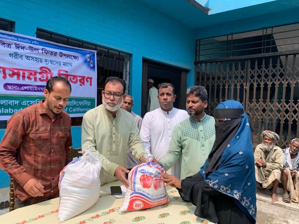 পবিত্র ঈদুল ফিতরকে সামনে রেখে যুক্তরাষ্ট্রভিত্তিক প্রবাসী সংগঠন জালালাবাদ অ্যাসোসিয়েশন অব ক্যালিফোর্নিয়ার উদ্যোগে ২০০টি অসহায় ও নিম্নআয়ের পরিবারের মাঝে ঈদ সামগ্রী বিতরণ করা হয়েছে।