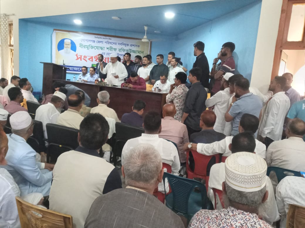 আজ মঙ্গলবার (২৪ মার্চ ২০২৬) ১১ টায় গোপালগঞ্জের নবনিযুক্ত জেলা প্রশাসক জনাব শরীফ রফিকউজ্জামানকে জেলা পরিষদের পক্ষ থেকে সংবর্ধনা প্রদান করা হয়। সংবর্ধনা অনুষ্ঠানে উপস্থিত ছিলেন গোপালগঞ্জের - ০২ আসনের সংসদ সদস্য ডাঃ কেএম বাবর, গোপালগঞ্জ জেলা বিএনপি'র সাধারণ সম্পাদক, কোটালীপাড়া উপজেলা বিএনপি'র সভাপতি এস এম মহিউদ্দিন , সাধারণ সম্পাদক আবুল বশার হালাদারসহ অঙ্গ সংগঠনের অন্যান্য নেতৃবৃন্দ। সংবর্ধা অনুষ্ঠানে সংক্ষিপ্ত বক্তব্যে নবনিযুক্ত প্রশাসক বলেন , যে দায়িত্ব আমাকে সরকার অর্পণ করেছেন, আমি তাহা সততা ও নিষ্ঠার সহিত পালন করব । কোন প্রকার অনিয়ম সহ্য করা হবে না। সবাইকে প্রধানমন্ত্রী তারেক রহমানের নির্দেশ বাস্তবায়নে এগিয়ে যাওয়ার আহ্বান জানান। জেলা প্রশাসনের পক্ষ থেকে ও সার্বিক সহযোগিতার আশ্বাস প্রদান করা হয়। আনন্দঘন ও উৎসবমুখর পরিবেশে সংবর্ধনা অনুষ্ঠান শেষ হয়। অনুষ্ঠান শেষে সকল অতীথিদের আপ্যায়নের ব্যবস্থা করা হয়।