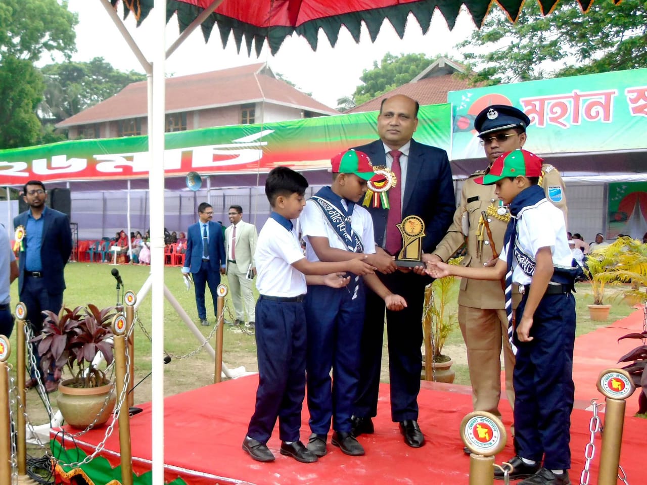জেলা প্রশাসনের অন্যান্য কর্মকর্তাবৃন্দ । অনুষ্ঠান শেষে বিচারকের মূল্যায়নে মালেকা একাডেমির ছাত্র- ছাত্রীরা প্রথম স্থান অধিকার করেন । জেলা প্রশাসক মহোদয় প্রথম স্থান অর্জনকারী মালেকাডেমীর ছাত্র-ছাত্রীদের পুরস্কার তুলে দেন এবং মালেকা একাডেমী অধ্যক্ষ, শিক্ষকসহ সকলকে অভিনন্দন জ্ঞাপন করেন। পাশাপাশি যারা এই কুচকাওয়াজ অনুষ্ঠানে অংশগ্রহণ করেছেন প্রত্যেকেই আগামীতে আরো বেশি করে প্রস্তুতি নিয়ে অনুষ্ঠানে অংশগ্রহণের আহ্বান করেন । সংক্ষিপ্ত বক্তব্যে স্বাধীনতা দিবসের গুরুত্ব তুলে ধরে তিনি বলেন , আমরা ৭১ সালে অনেক রক্তের বিনিময় স্বাধীনতা অর্জন করেছি । ৩০ লক্ষ শহীদের আত্মত্যাগের মাধ্যমে অর্জিত বাংলাদেশের স্বাধীনতা কোনভাবেই ভুলন্ঠিত হতে দেওয়া যাবে না। বাংলাদেশকে উন্নয়নশীল ও সমৃদ্ধশালী করে তুলতে হবে তাহলেই শহীদদের আত্মা শান্তি পাবে । যে সমস্ত