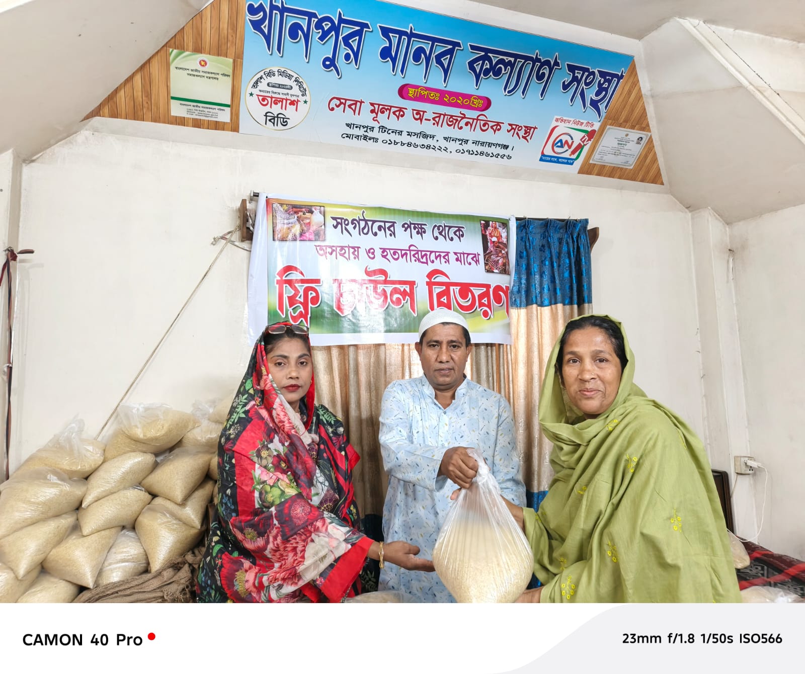 নারায়ণগঞ্জ জেলা প্রশাসক হইতে অনুদানকিত চাউল, খানপুর মানব কল্যাণ সংস্থার উদ্যোগে, নারায়ণগঞ্জের বিভিন্ন ওয়ার্ডের, অসহায় হতদরিদ্র পরিবারের সদস্যদের মাঝে, অদ্য এলাকার গণ্যমান্য, প্রধান অতিথি, ব্যক্তিবর্গ, মোহাম্মদ আজাদ সাহেবের উপস্থিতিতে,