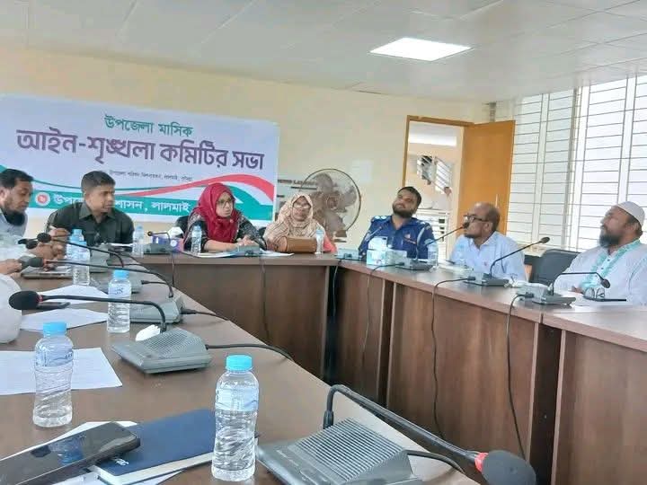 বৃহস্পতিবার,৩০ এপ্রিল,২০২৬ খ্রিঃ, দুপুর ১২ টায় লালমাই উপজেলা পরিষদের সম্মেলন কক্ষে উপজেলা নির্বাহী অফিসার ও উপজেলা পরিষদের প্রশাসক উম্মে তাহমিনা মিতু এর সভাপতিত্ত্বে উপজেলা মাসিক আইন- শৃঙ্খলা সভা এবং উপজেলা পরিষদের মাসিক সাধারণ সভা অনুষ্ঠিত হয়েছে।