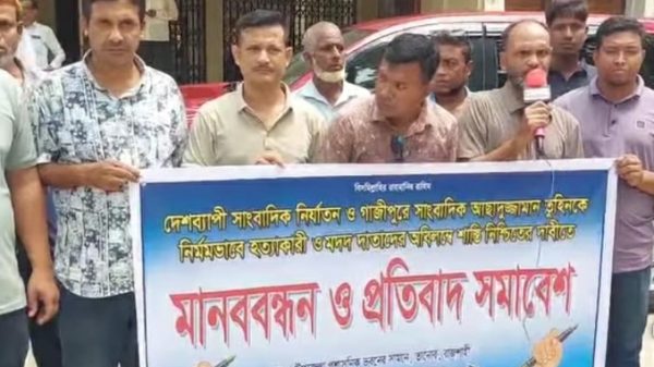 আহসান উল্লাহ রাজু স্টাফ রিপোর্টার (কুমিল্লা) গাজীপুরে দৈনিক প্রতিদিনের কাগজ এর সাংবাদিক মো: আসাদুজ্জামান তুহিনকে প্রকাশ্যে নৃশংস হত্যাকাণ্ডে জড়িত সন্ত্রাসীদের ফাঁসি ও সাংবাদিকদের পেশাগত রাষ্ট্রীয় নিরাপত্তা নিশ্চিতের দাবিতে লালমাই