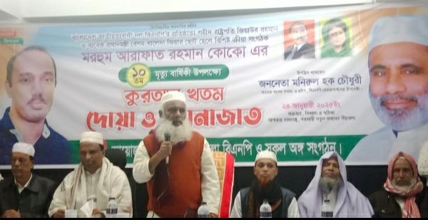 আহসান উল্লাহ রাজু (স্টাফ রিপোর্টার) ২৪ জানুয়ারি শুক্রবার লালমাই উপজেলা বিএনপি ও সকল সংগঠনের আয়োজনে মরহুম আরাফাত রহমান কোকো এর ১০তম মৃত্যু বার্ষিকী উপলক্ষে কুরআন খতম দোয়া ও মোনাজাত
