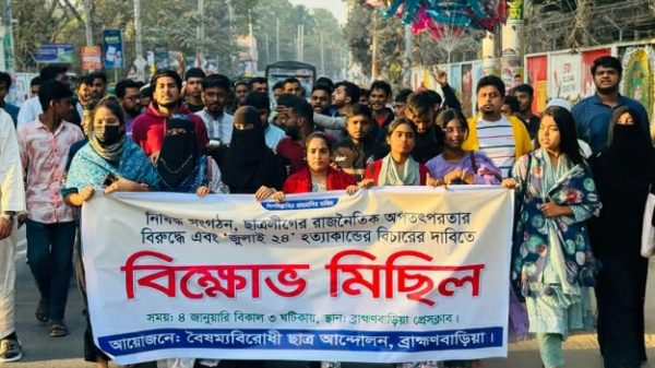 সংবাদদাতা : দেলোয়ার হোসাইন মাহদী (ব্রাহ্মণবাড়িয়া) প্রতিনিধি : গতকাল গভীর রাতে ব্রাহ্মণবাড়িয়ায় নিষিদ্ধ সংগঠন ছাত্রলীগের প্রতিষ্ঠাবার্ষিকীতে ঝটিকা মিছিলের খবর পেয়ে ব্রাহ্মণবাড়িয়ায় শনিবার (৪জানুয়ারি) সড়ক অবরোধ করেছে বৈষম্যবিরোধী ছাত্র আন্দোলনের