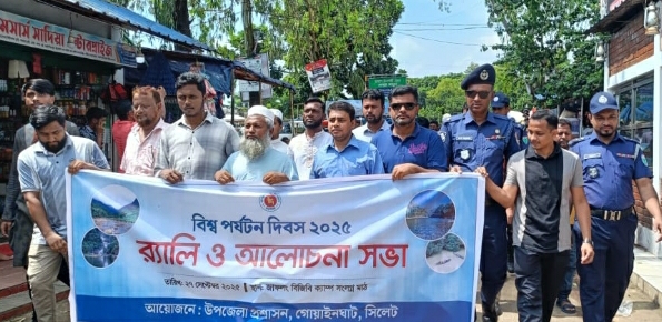 সিলেট জেলা প্রতিনিধি: বিশ্ব পর্যটন দিবস উপলক্ষে “টেকসই উন্নয়নে পর্যটন” এ প্রতিপাদ্যকে সামনে রেখে সিলেটের গোয়াইনঘাট উপজেলার পর্যটন কেন্দ্র জাফলংয়ে র্যালি ও আলোচনা সভা অনুষ্ঠিত হয়েছে। শনিবার সকালে গোয়াইনঘাট উপজেলা