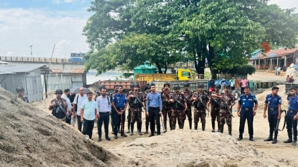 জাফলংয়ে টাস্কফোর্সের অভিযানে ৬০ হাজার ঘনফুট বালু জব্দ।